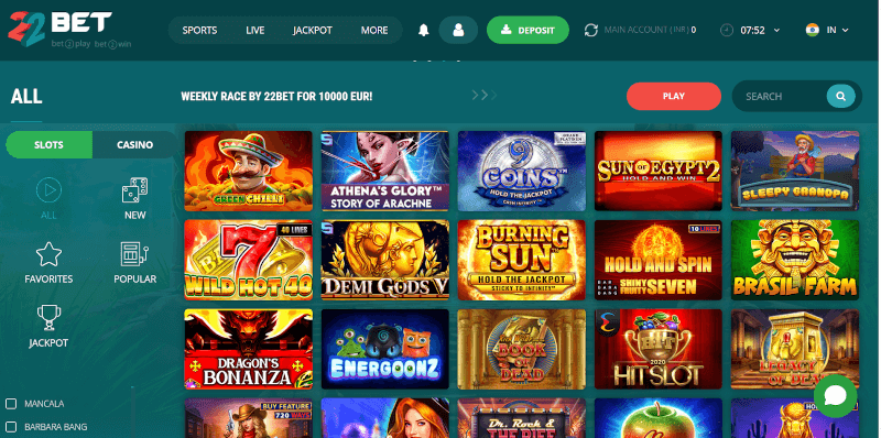 CAN I PLAY JACKPOT SLOTS AT 22BET CASINO INDIA?